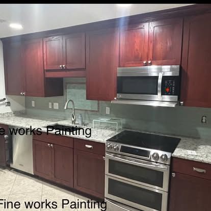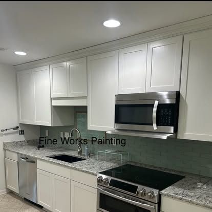 At Fine Works Painting, we believe that a fresh coat of paint can transform your cabinets and elevate your space. Our dedicated team specializes in cabinet painting, using both hand painting and spraying techniques to achieve the perfect finish. We take pride in selecting only the best products to ensure long-lasting beauty and durability. Whether you’re looking to refresh your kitchen or add a splash of color to your bathroom, we're here to bring your vision to life with precision and care!
